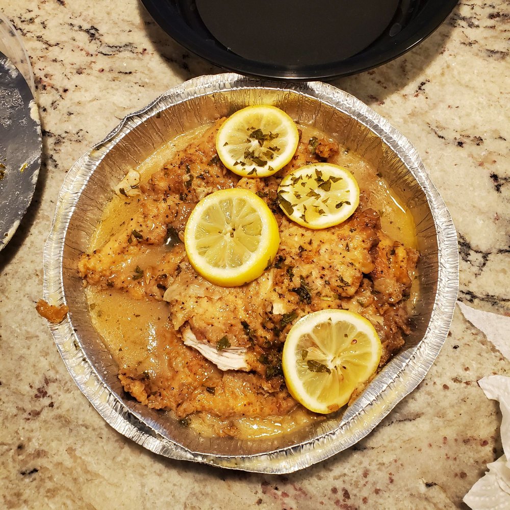 Boneless breast of chicken lightly-breaded and pan-fried, topped with lemon sauce.